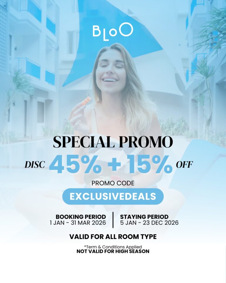 Welcome to BloO Bali Hotel! Generosity and flexibility are our key values and we’re here to deliver nothing short of it to you. Strategically situated, our property is not only conveniently close to Ngurah Rai Airport but also provides easy access to your dream vacation. Take a short 10-minute drive to indulge yourself in Seminyak, Bali’s beating heart of fashion, restaurant scene and nightlife, or take a stroll down to Legian Beach if you are seeking a getaway to de-stress, rejuvenate and revitalize your mind, body and spirit. In your spacious 32sqm choice of room type, you will happily find BloO to be your perfect choice of stay whether you prefer to travel solo, with your soulmate or in a group of family, friends or colleagues. Our friendly staff awaits your arrival and will be at your disposal to accommodate your needs as we aim to help you realize your perfect vacation!